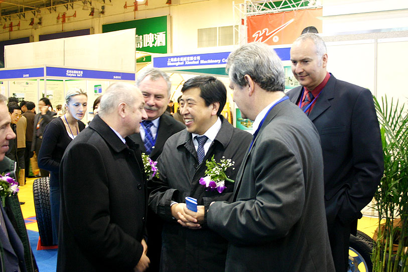 3月15日至17日,“第二屆中國國際橡膠及輪胎工業展覽會”在青島國際會展中心舉行。此次展會,我公司與瑪達道爾(MATADOR)、康斯初克塔(KONSTRUKTA)、布茲魯克(BUZULUK)、維泊(VIPO)四家公司聯合參展,成為本次展會一大亮點和眾多參觀者關注的焦點。斯洛伐克駐華大使濟格蒙德 貝爾托克(Zigmunt Bertok)在我公司董事長袁仲雪的陪同下也興致勃勃地前來觀展。