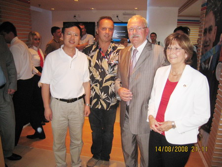 8月14日,公司總裁高彥臣、國際貿(mào)易部部長魏學(xué)亮應(yīng)斯洛伐克奧運委員會和大陸瑪塔道爾公司邀請,在北京斯洛伐克奧運之家拜會了來華出席奧運會開幕式的斯洛伐克總統(tǒng)伊萬加什帕羅維奇及夫人、大陸瑪塔道爾公司領(lǐng)導(dǎo)羅西納先生一行,并參加了“斯洛伐克運動員奧運會慶功晚宴”。