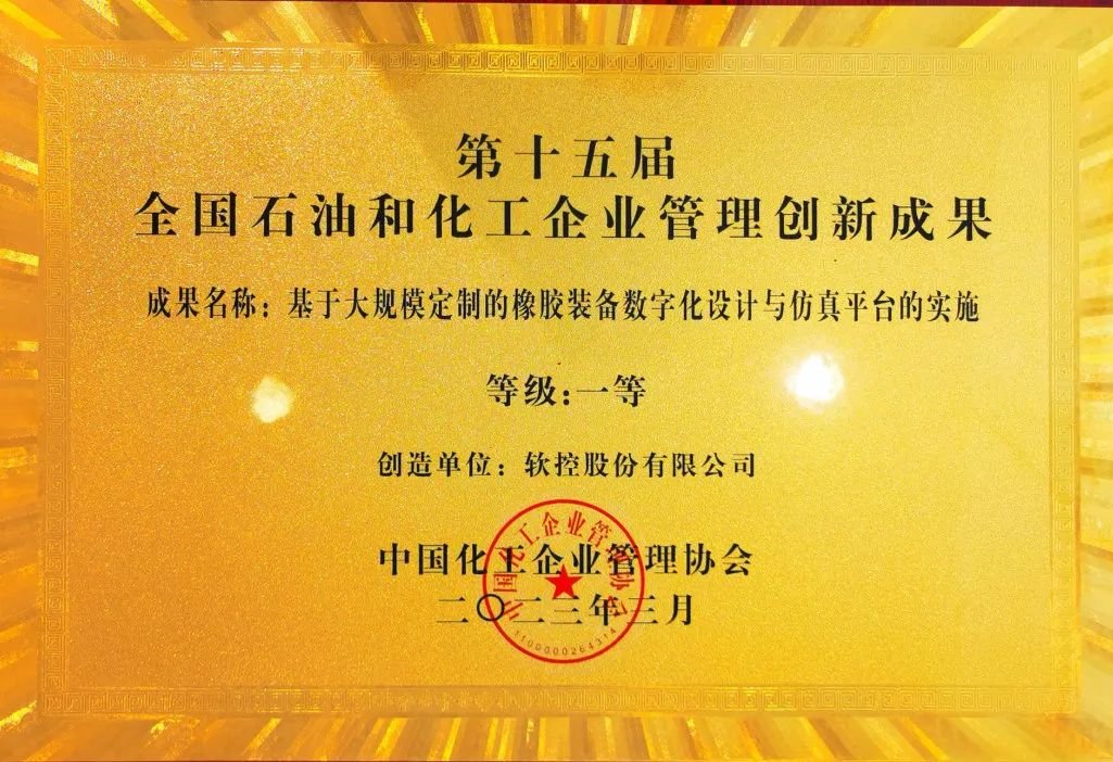 3月30至31日,第十五屆全國石油和化工企業(yè)管理創(chuàng)新大會暨高峰論壇在昆明舉行,軟控股份有限公司申報的《基于大規(guī)模定制的橡膠裝備數(shù)字化設(shè)計與仿真平臺的實施》榮獲管理創(chuàng)新成果一等獎。